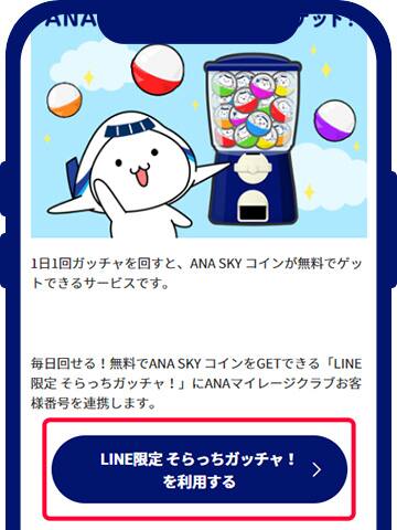 ANA SKY Webで「LINE限定 そらっちガッチャ!を利用する」をタップ