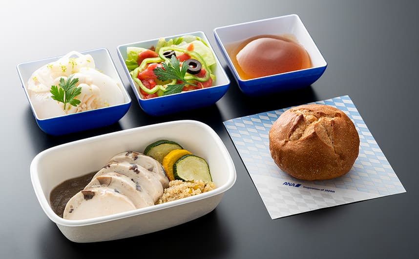 機内食には、アレルギー物質を含む、または原材料として使用されている可能性があります。お客様の安全を確保するため、ANAではアレルゲン対応食をご用意しております。